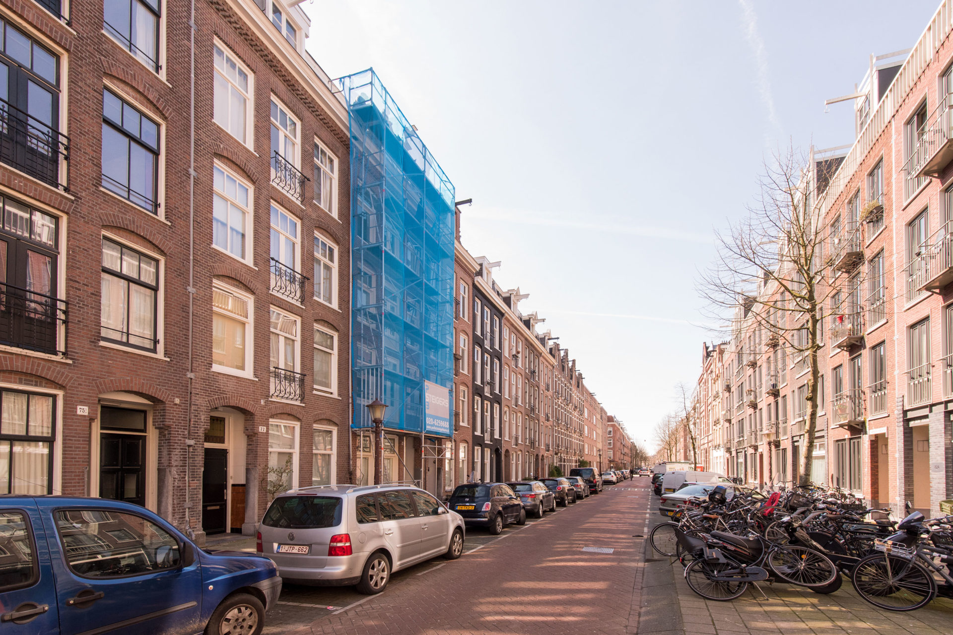 Niet alleen het houtwerk, ook het hekwerk heeft bescherming tegen weersinvloeden nodig. Op de Kanaalstraat hebben we het hekwerk van het Franse balkon voorzien van een authentieke grachtengroene kleur.