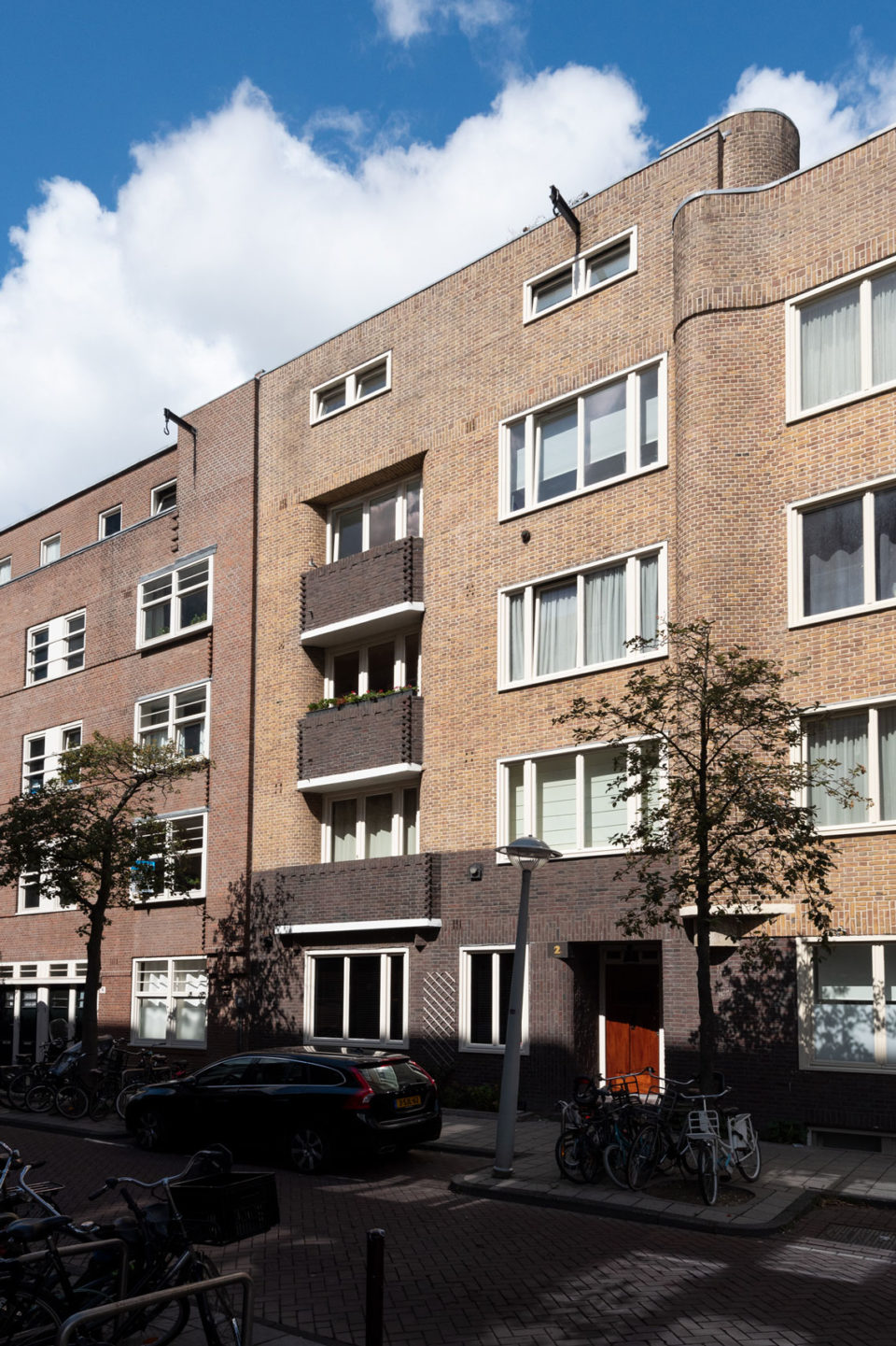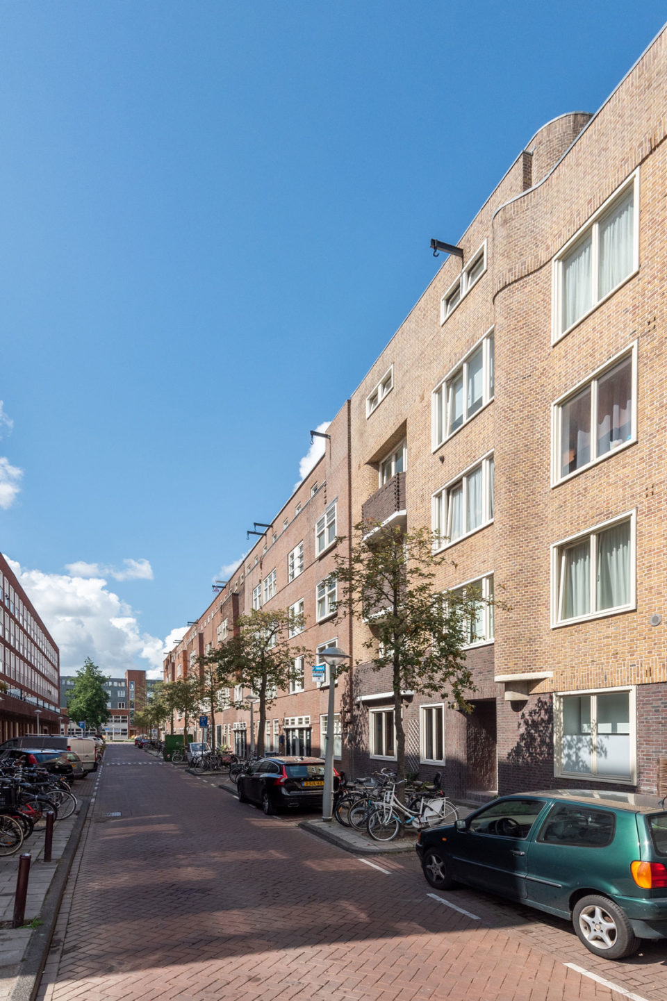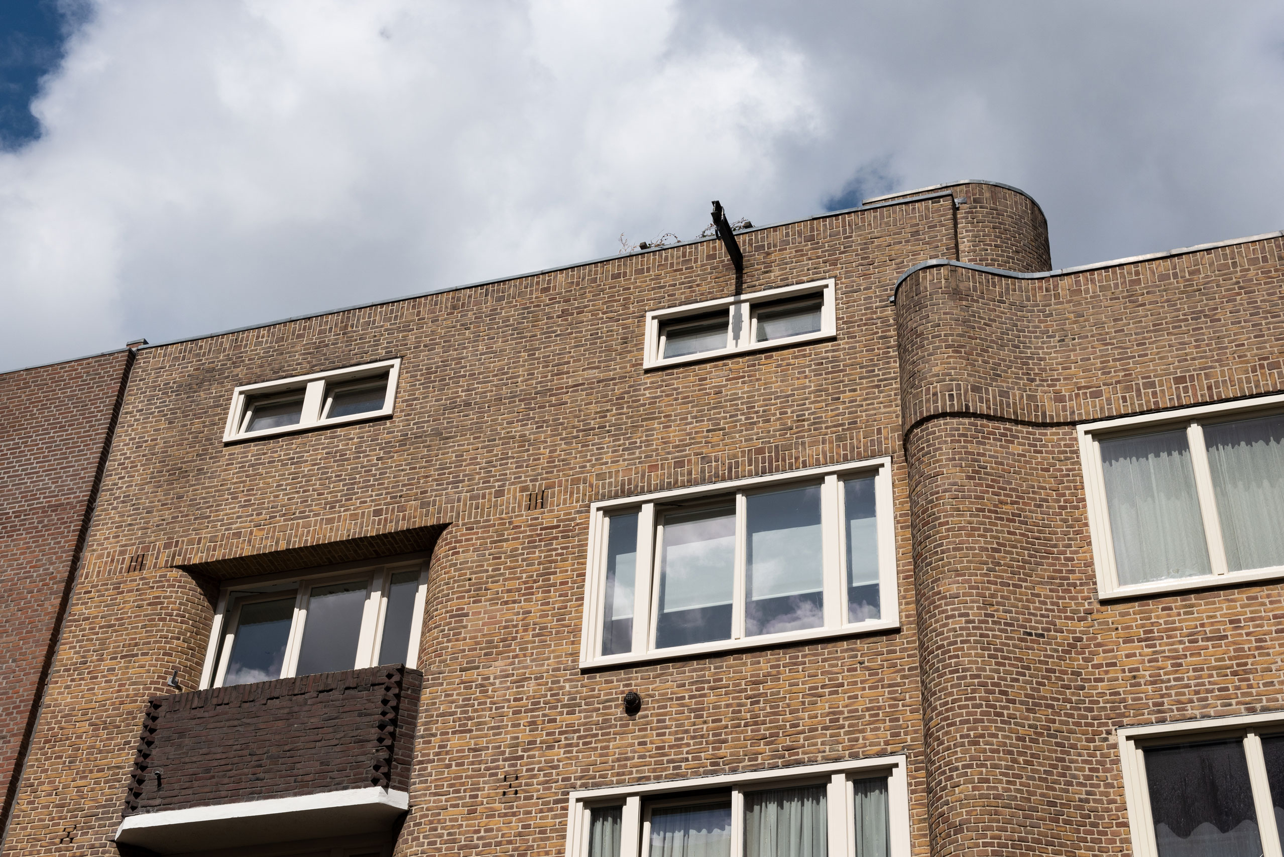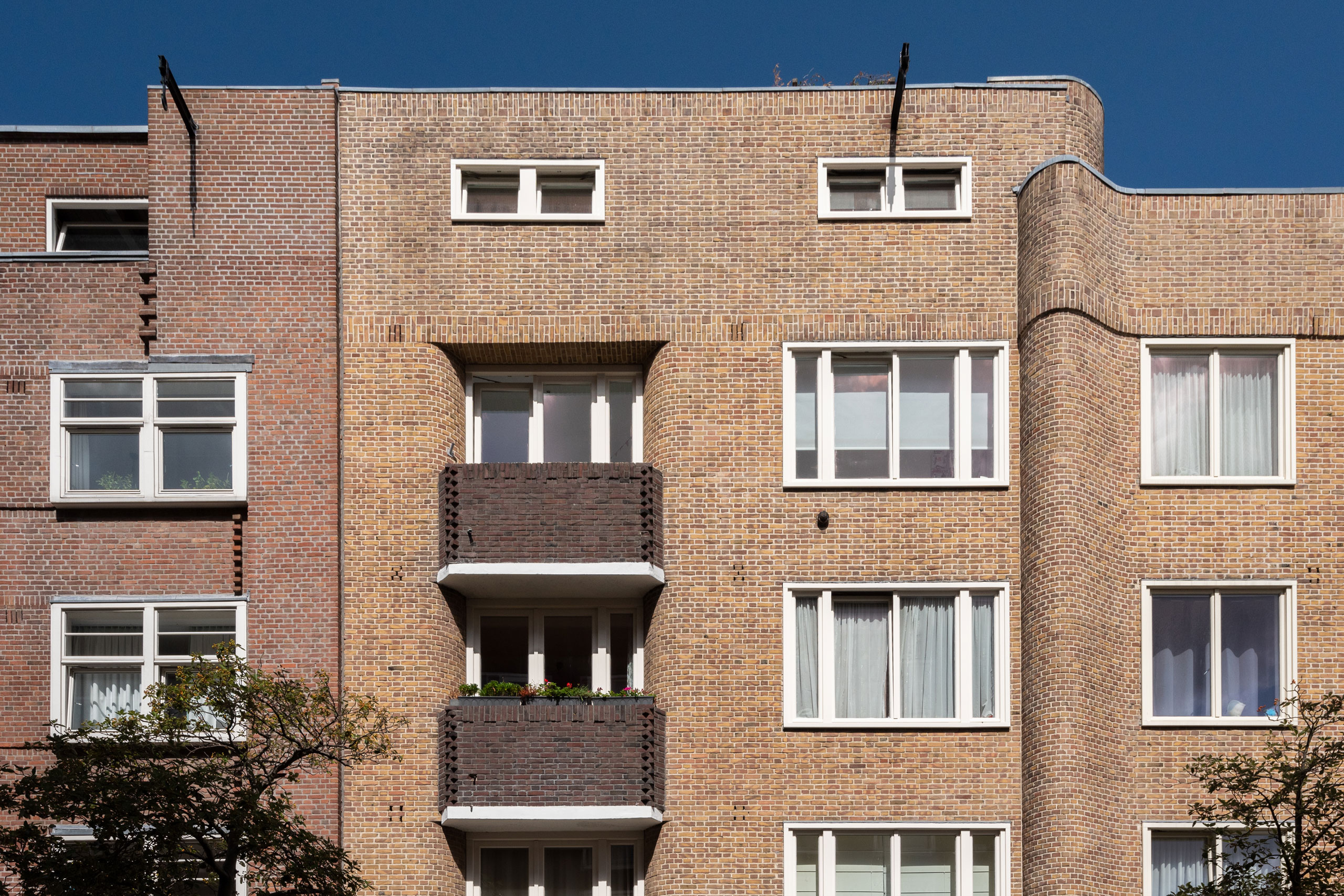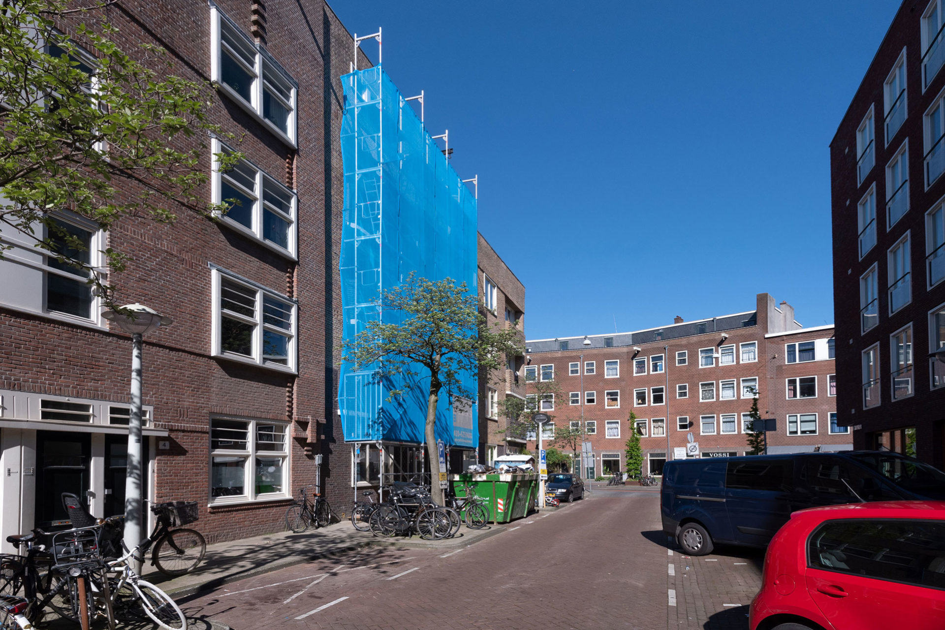 Voor een periode van vijf weken heeft het vier verdiepingen tellende woningencomplex in de vaste steigers gestaan. Na uitvoering van het buitenschilderwerk en vervanging van kozijnen hebben de prachtige jaren twintigwoningen weer de uitstraling die ze verdienen.
