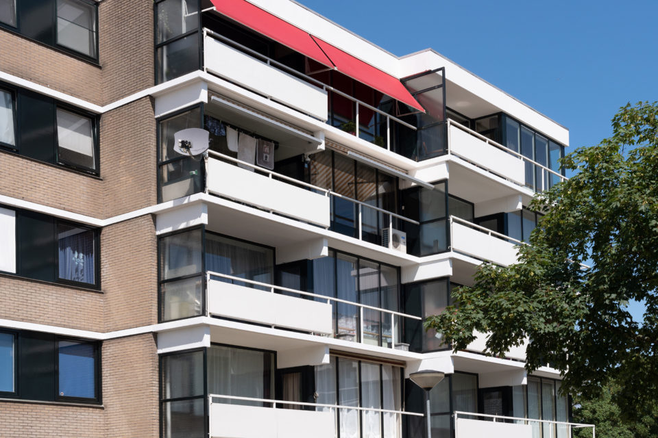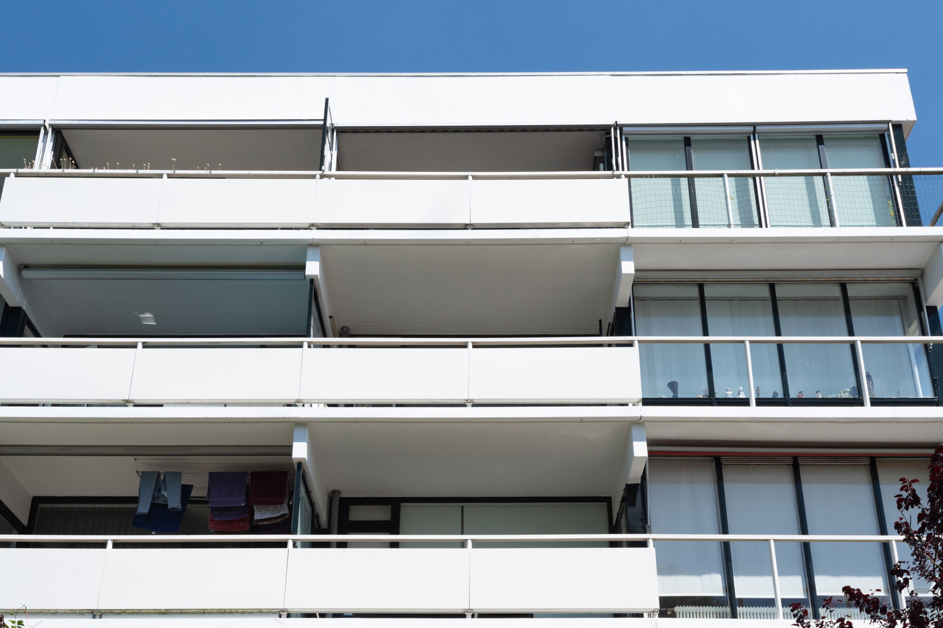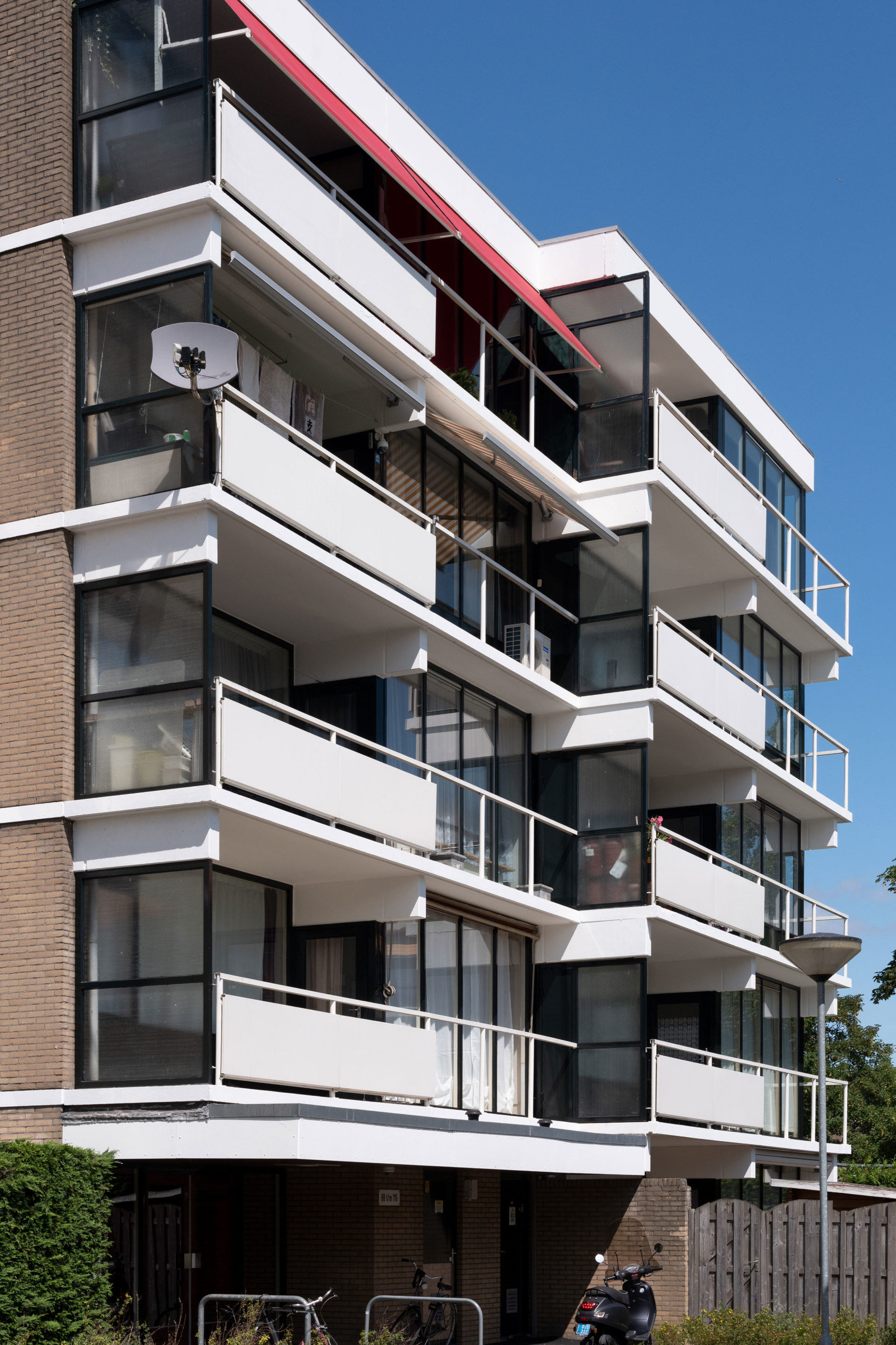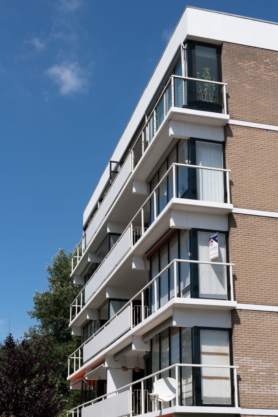 In één maand hebben we verschillende buitenschilder werkzaamheden uitgevoerd. Aan de buitenzijde hebben we de grote daklijsten gelatext en de ruime balkons opgefrist. Onze gespecialiseerde glaszetters hebben nieuw dubbelglas gezet in de portiekdeuren. We hebben de VvE geadviseerd over het kleurgebruik. De balkons hebben nu weer een strakke uitstraling met de nieuwe witte latexverf.